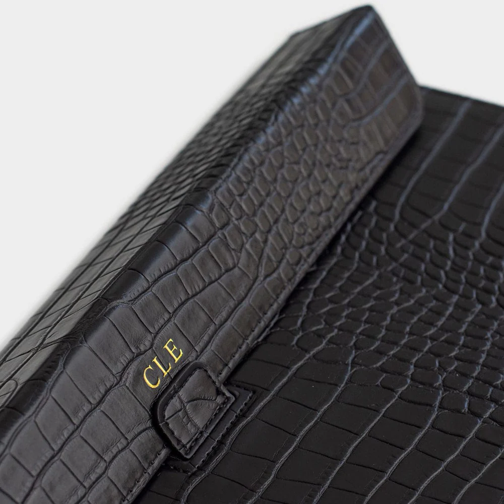 Designed for those who demand both elegance and practicality, this bespoke laptop sleeve with stand seamlessly blends style with function. Hand finished and crafted from luxurious vegan leather, it strikes the perfect balance of sleek luxury and everyday practicality.